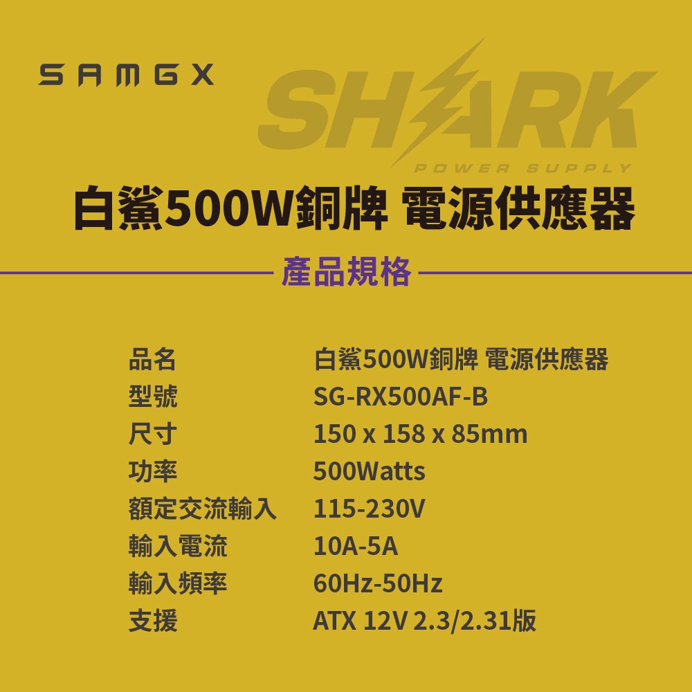銅牌 電源供應器 : Samgx Rx500afç½é¯500w 80 é